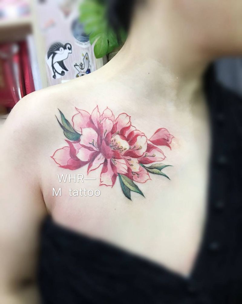 • 女性大花胸纹身_43张霸气漂亮的女性大花胸纹身图案作品
