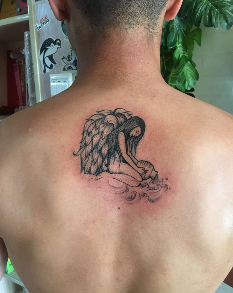 水瓶座天使纹身图片_背部纹身图案