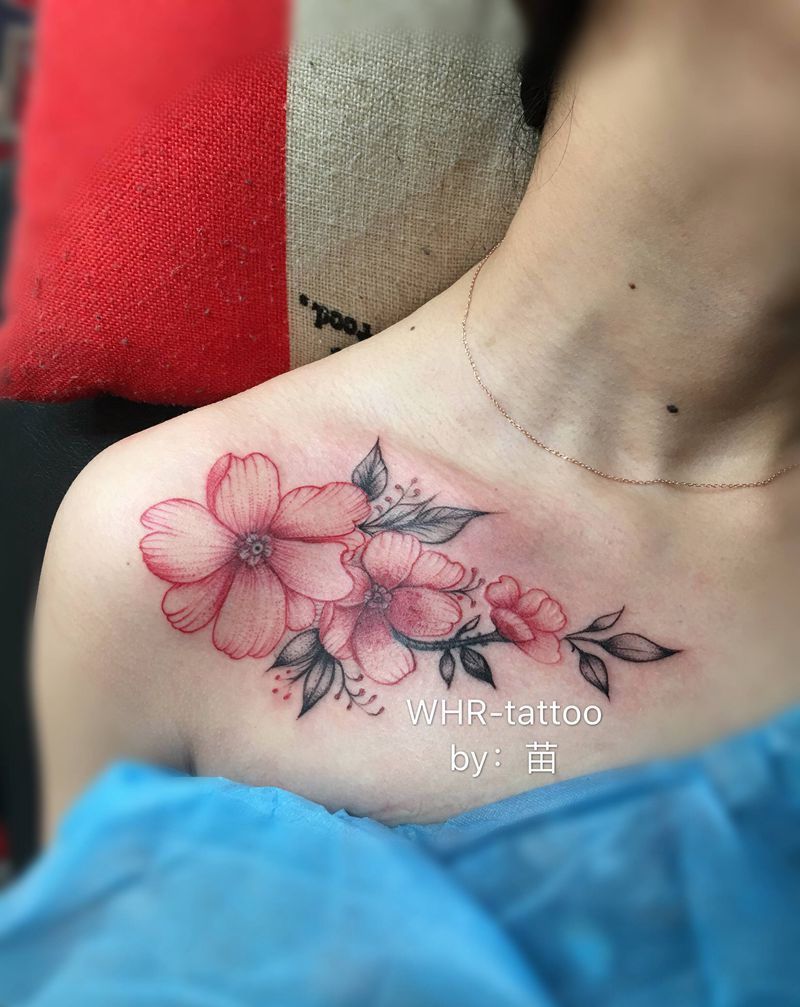 • 女性大花胸纹身_43张霸气漂亮的女性大花胸纹身图案作品