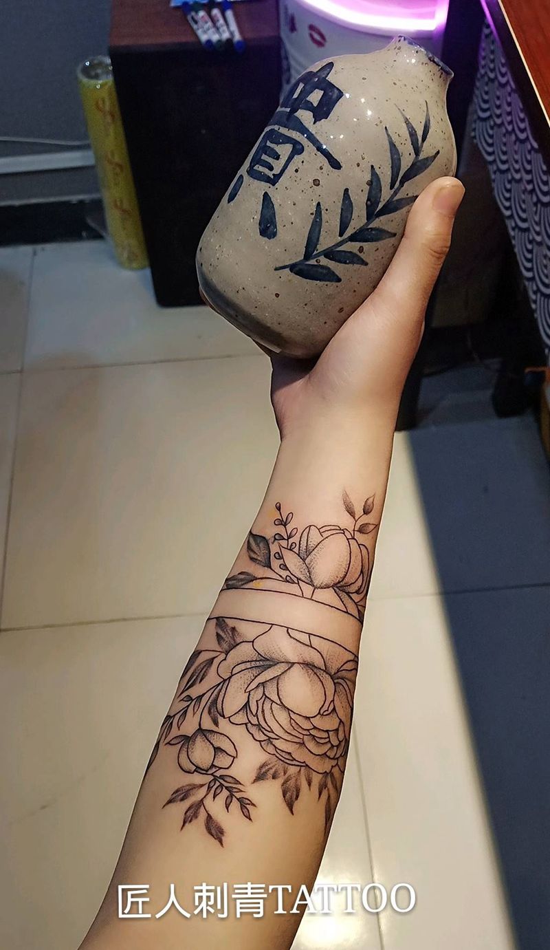 一组15张莲花纹身手