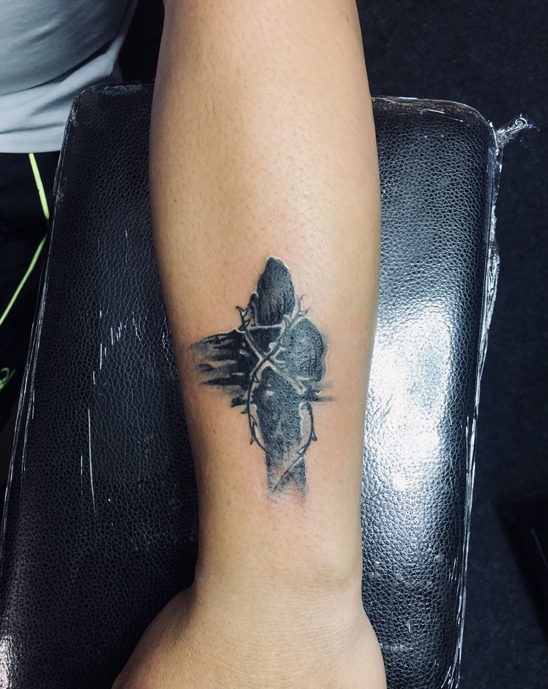当前位置: 首页 >河南省濮阳市纹身店-岩刺青纹身工作室纹身图案>十字架遮盖纹身图片_手臂纹身图案