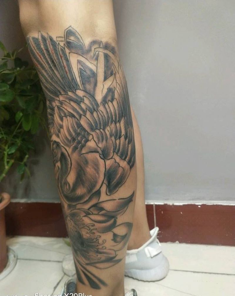 当前位置: 首页 >河南省濮阳市纹身店-岩刺青纹身工作室纹身图案>小腿仙鹤纹身图片_腿部新传统纹身图案