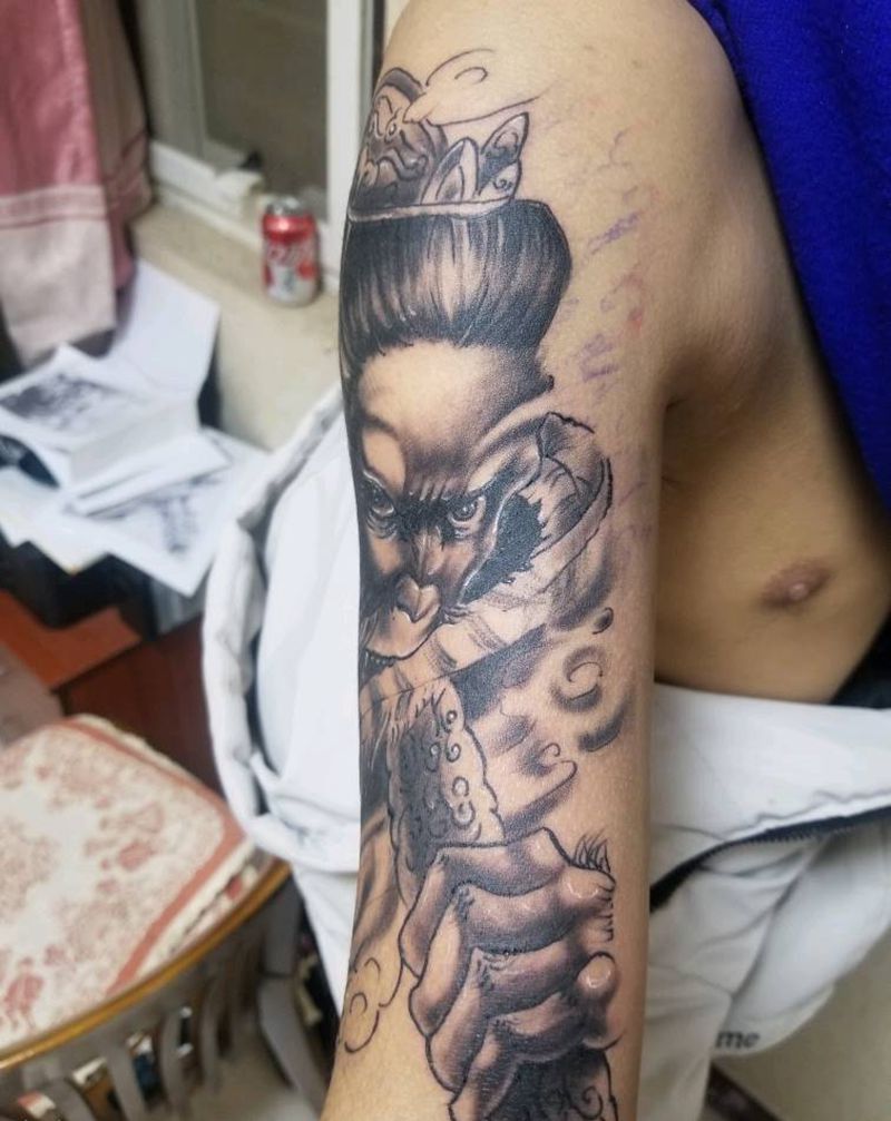 当前位置: 首页 >河南省濮阳市纹身店-岩刺青纹身工作室纹身图案>大臂美猴王纹身图片