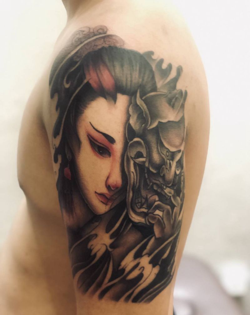 当前位置: 首页 >河南省濮阳市纹身店-濮阳墨客刺青(纹身培训)纹身图案>艺妓纹身图片_手臂新传统纹身图案