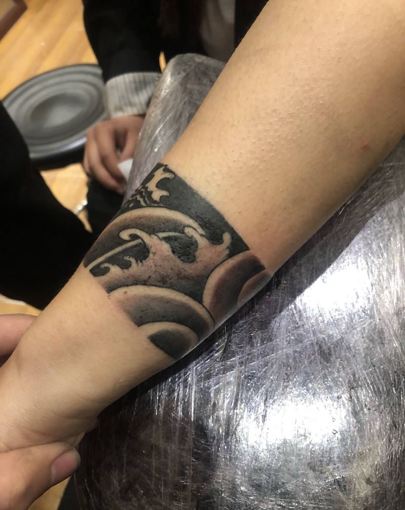 当前位置: 首页 >河南省濮阳市纹身店-濮阳墨客刺青(纹身培训)纹身图案>即兴设计臂环纹身图片_手臂手部新传统纹身图案