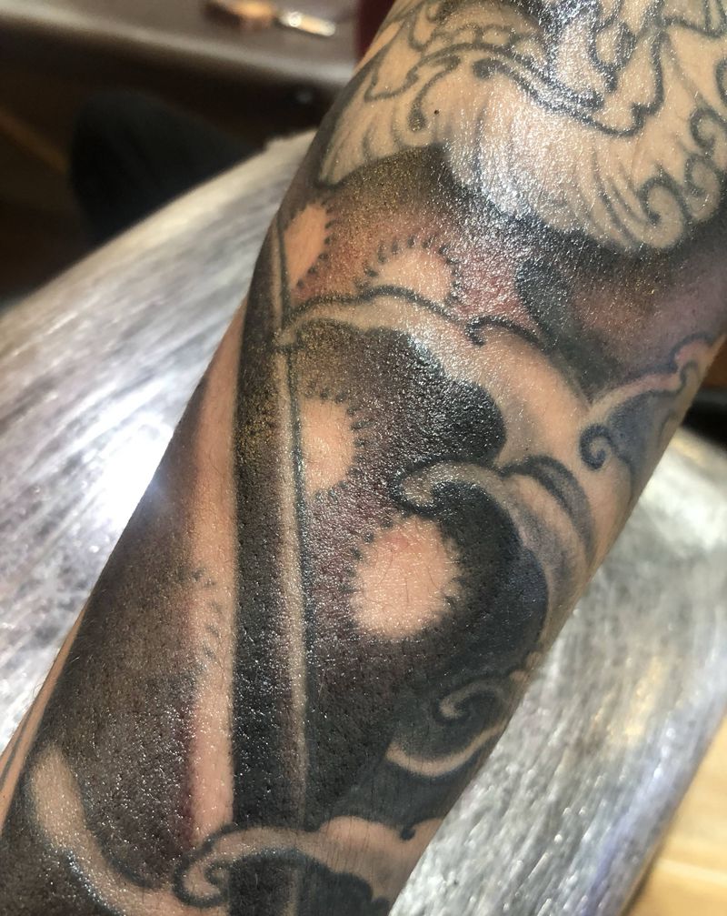 当前位置: 首页 >河南省濮阳市纹身店-濮阳墨客刺青(纹身培训)纹身图案>修改花臂未完。纹身图片_手臂肩部新传统纹身图案