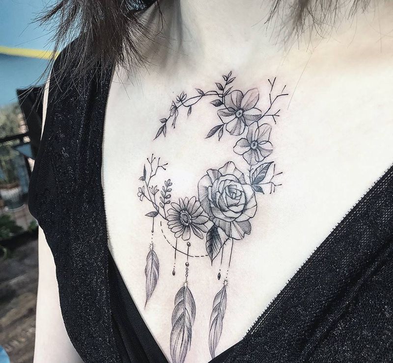 • 女性大花胸纹身_43张霸气漂亮的女性大花胸纹身图案作品