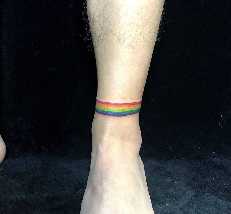 彩虹脚环纹身图片_腿部脚部纹身图案