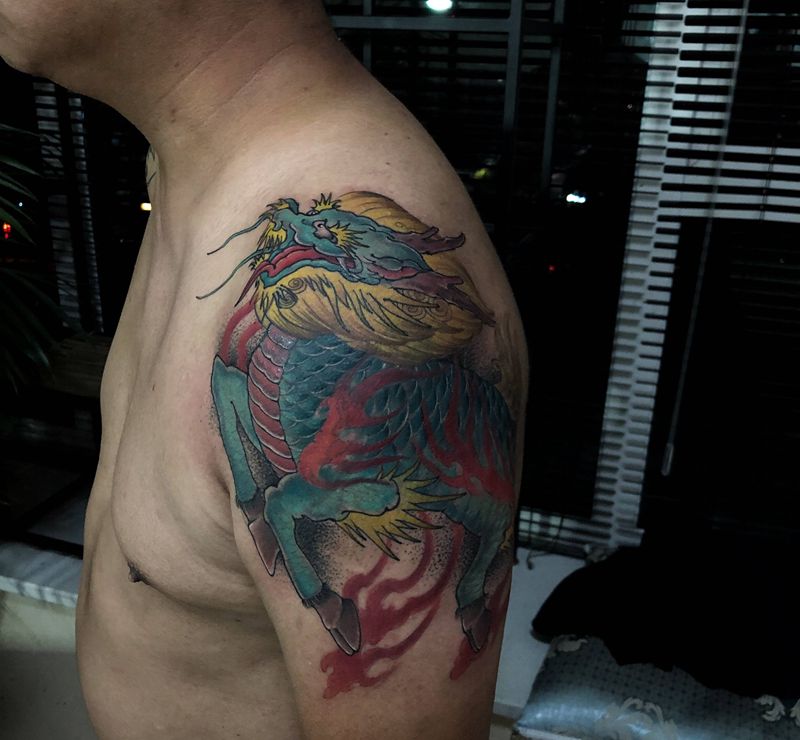 当前位置: 首页 >河南省许昌市纹身店-沄刺青工作室纹身图案>麒麟纹身图片_肩部新传统纹身图案