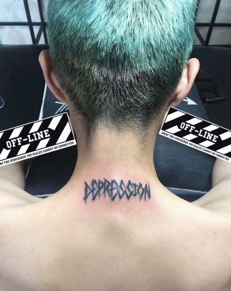许昌沄刺青纹身图片_颈部文字纹身图案
