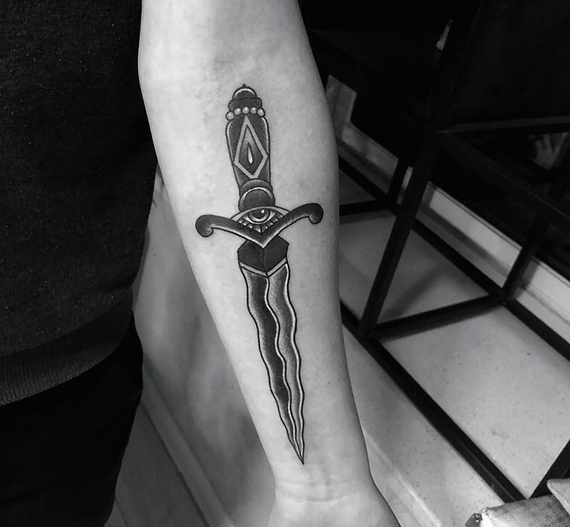 许昌文身沄刺青纹身图片_手臂匕首纹身图案