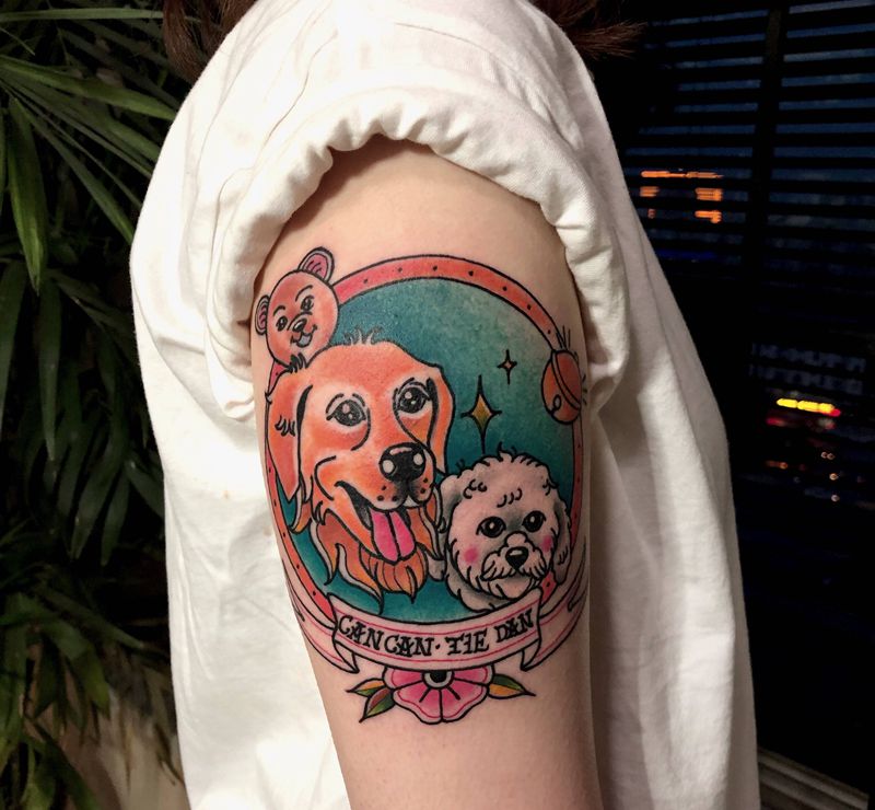 当前位置: 首页 >河南省许昌市纹身店-沄刺青工作室纹身图案>许昌沄刺青纹身图片_手臂肩部Old School狗纹身图案