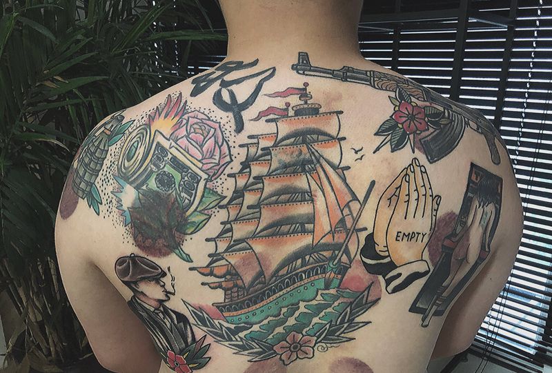 当前位置: 首页 >河南省许昌市纹身店-沄刺青工作室纹身图案>许昌文身沄刺青纹身图片_背部Old School纹身图案