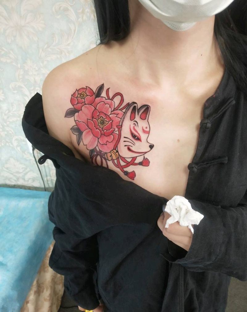 胸花纹身图片_胸部新传统纹身图案