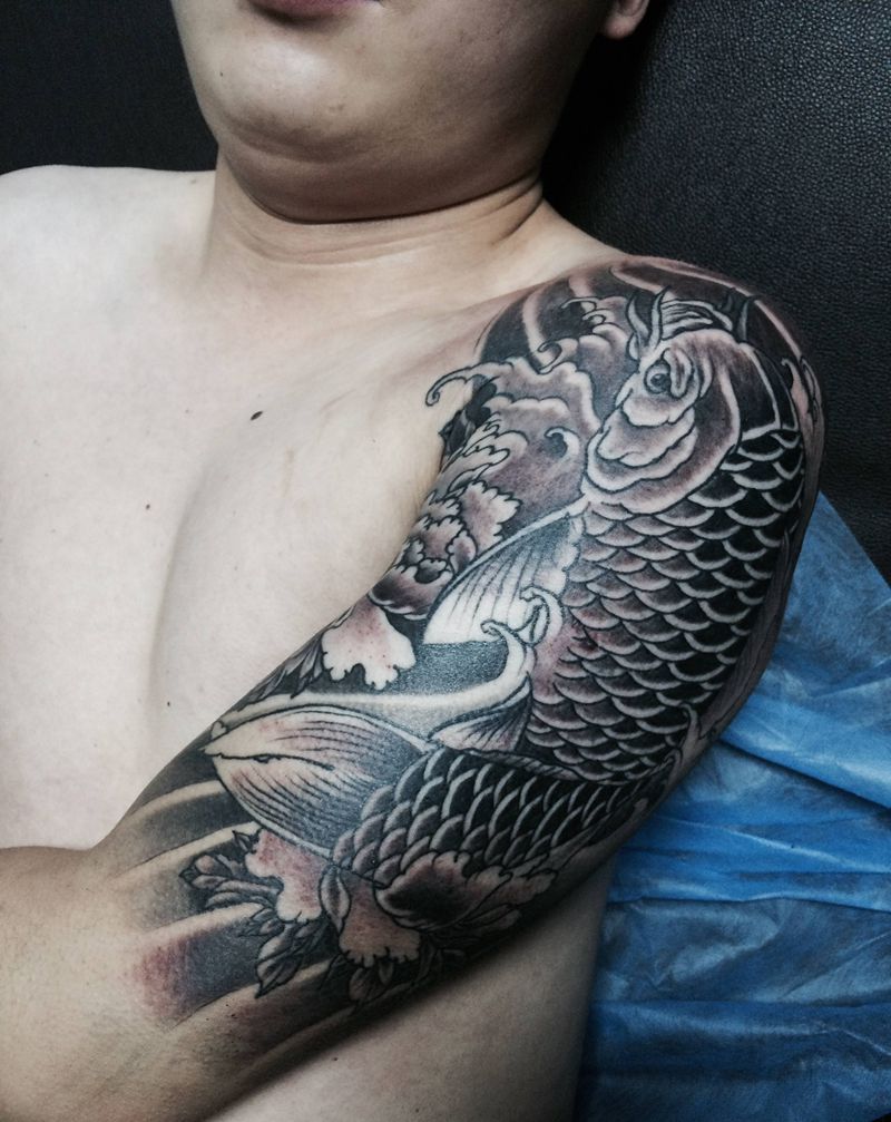 大臂鲤鱼纹身图片_手臂新传统纹身图案