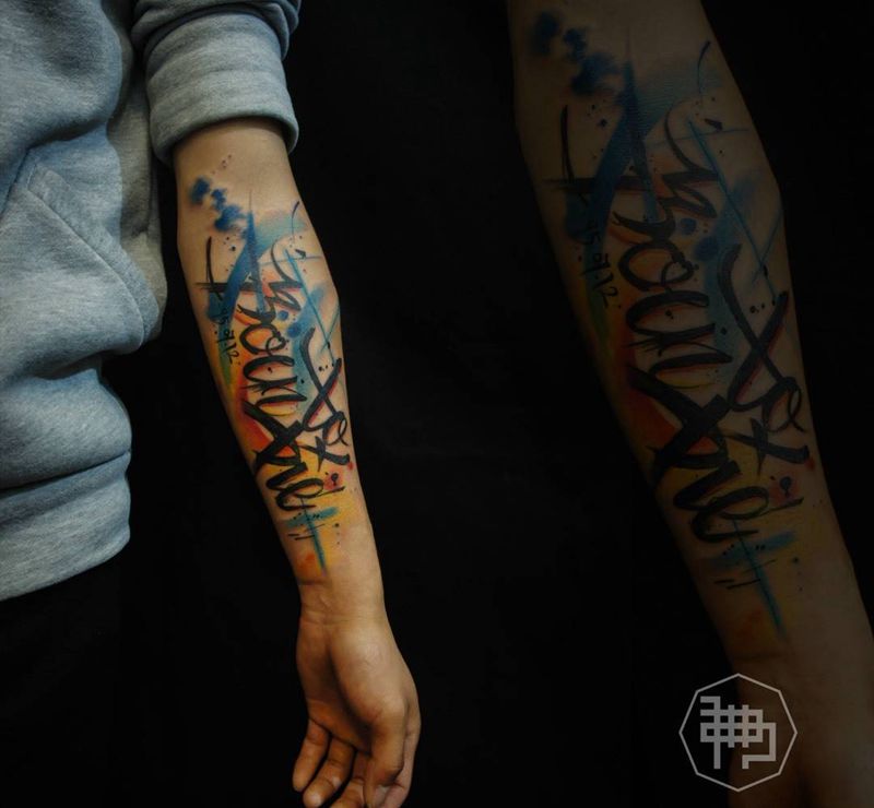 • T家庭图,一家四口生日纪念!纹身图片_手臂纹身图案