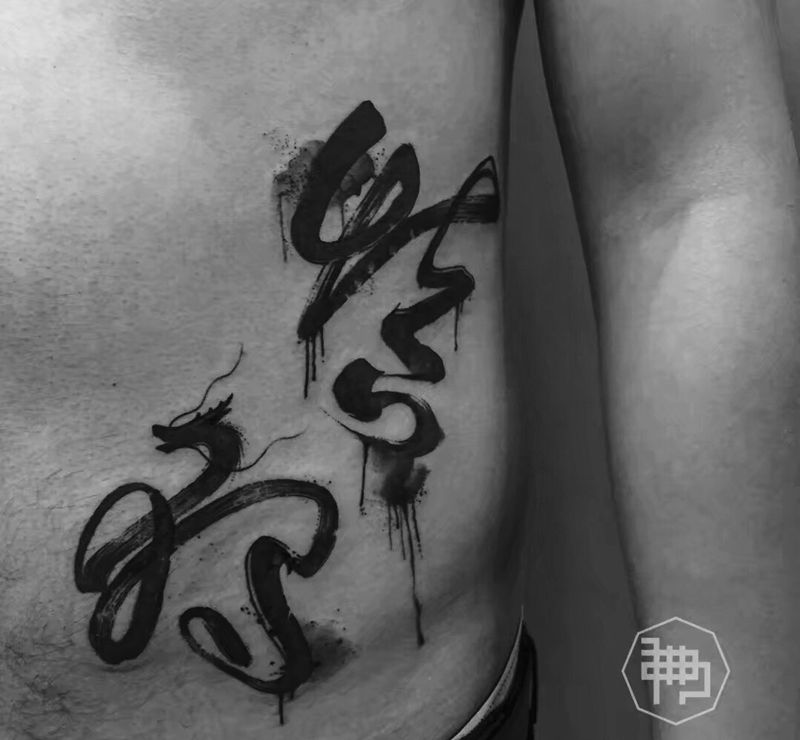 • T关于私处得爱!纹身图片_成品腹部清新字符图腾纹身图案