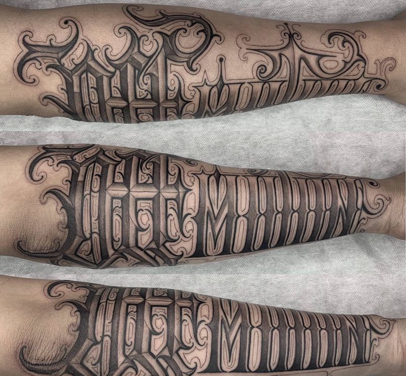 当前位置: 首页 >湖北省武汉市纹身店-Liberator Tattoo纹身图案>UVB2纹身图片_手臂花体字纹身图案