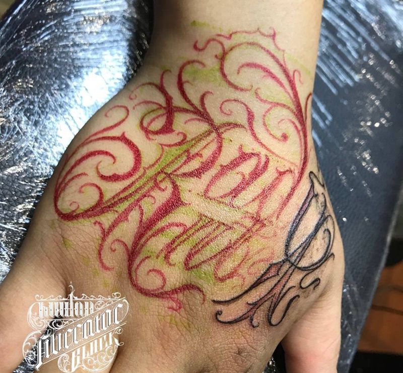 当前位置: 首页 >湖北省武汉市纹身店-Liberator Tattoo纹身图案>UVB2纹身图片_手部花体字纹身图案