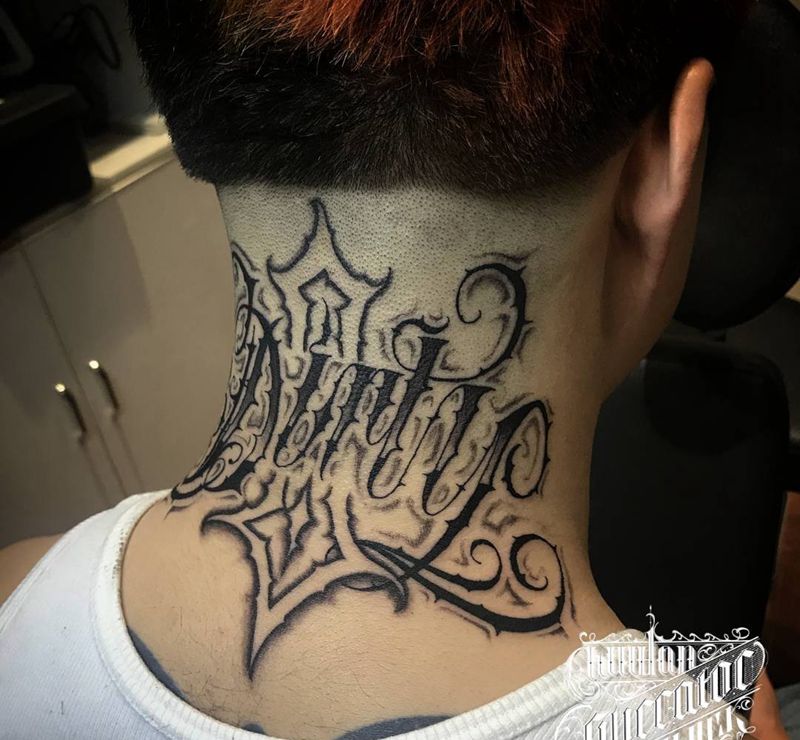 UVB2纹身图片_颈部肩部花体字纹身图案