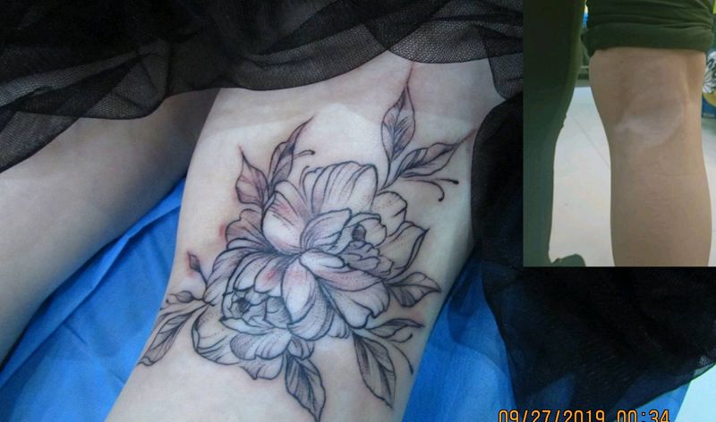 素花遮盖纹身图片_腿部纹身图案