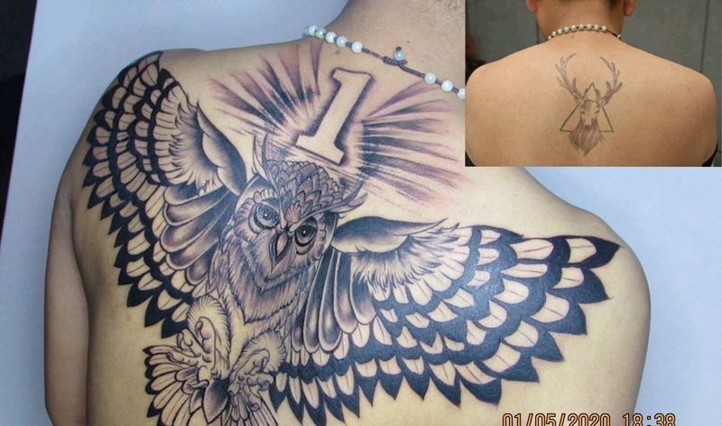 黑灰满背纹身图案