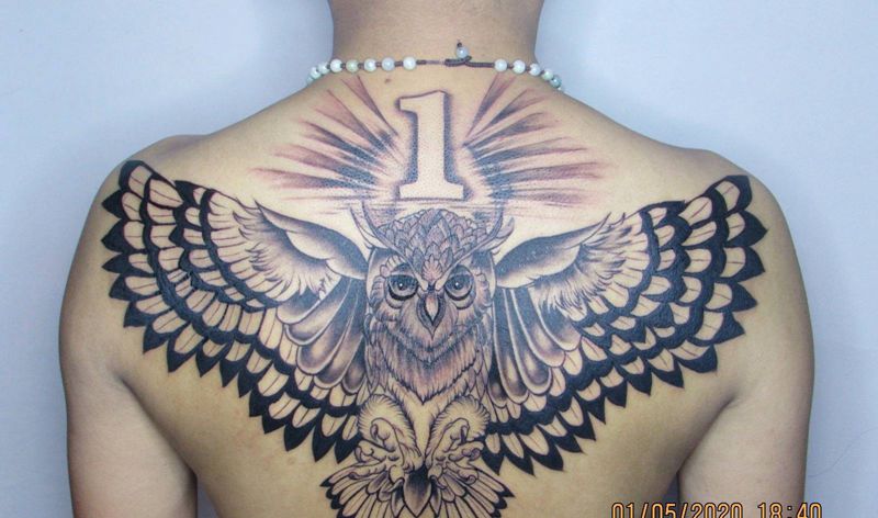 • 黑灰满背纹身图案