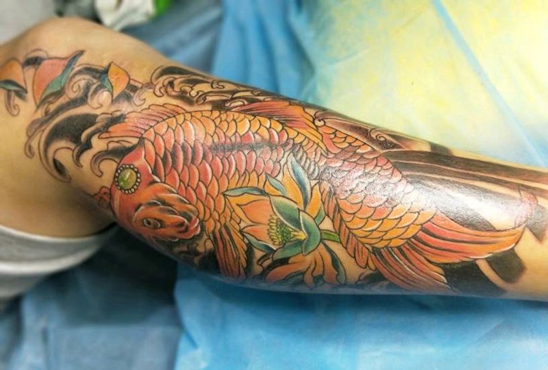 当前位置: 首页 >河南省省直辖纹身店-忠南纹艺纹身图案>鲤鱼遮疤纹身图片