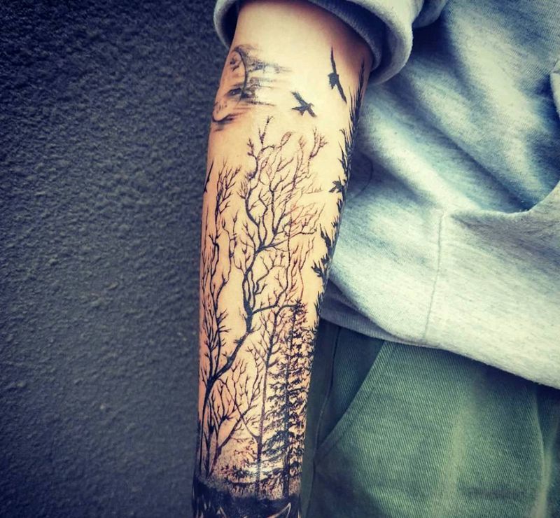 森林臂纹身图片_手臂纹身图案