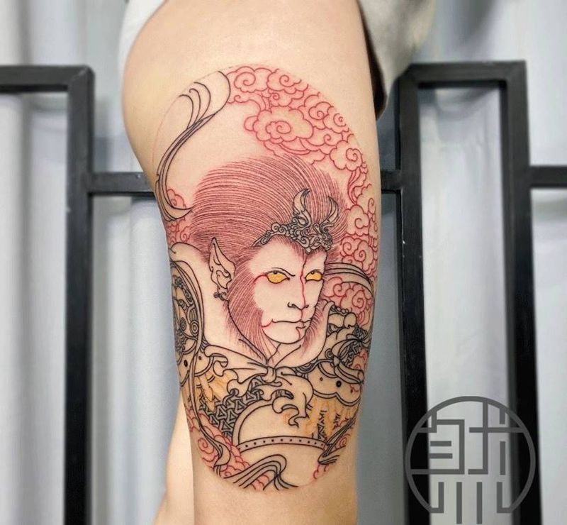当前位置: 首页 >湖北省武汉市纹身店-RAN-TATTOO纹身图案>孙悟空割线完成纹身图片_腿部手臂老传统新传统孙悟空祥云老传统纹身图案