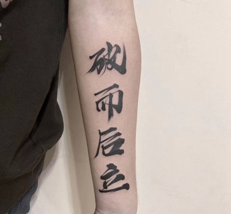 书法毛笔字纹身图片_手部手臂花体字水墨书法毛笔字纹身图案