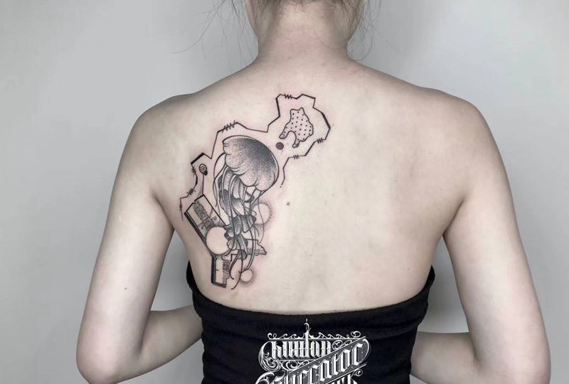 当前位置: 首页 >湖北省武汉市纹身店-Liberator Tattoo纹身图案>水母与痣纹身图片_背部New School点刺纹身图案