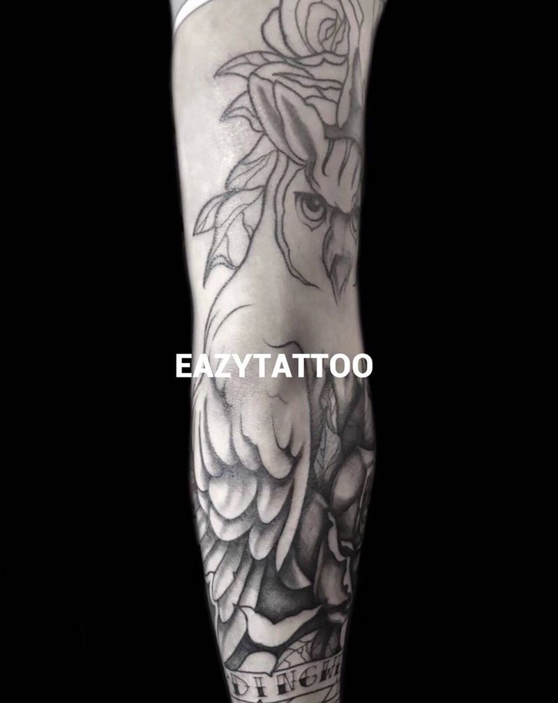 • T网红王老大花腿龙纹身图片_腿部新传统纹身图案