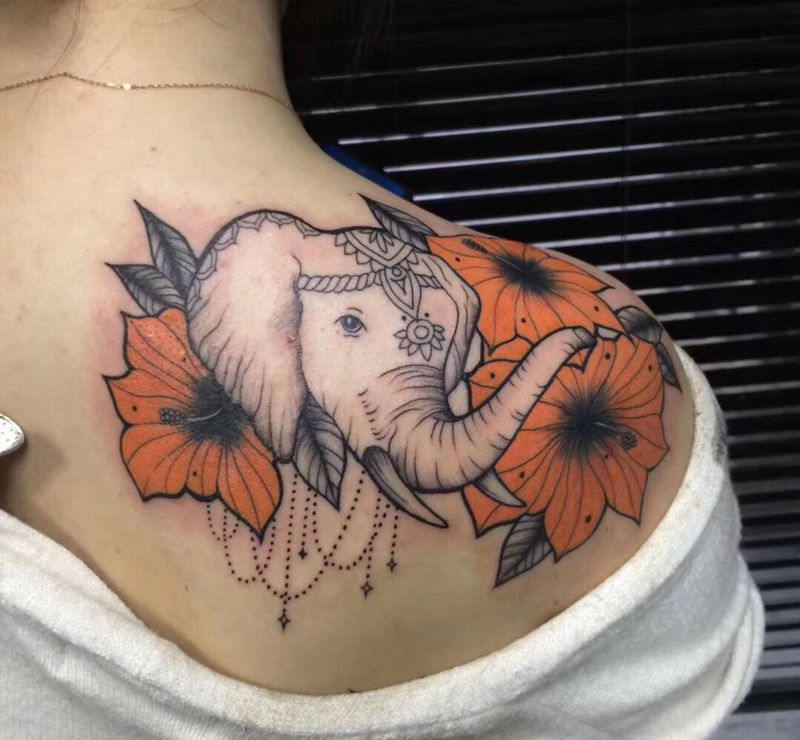 • 纹身吧推荐的披肩图腾半胛纹身图案作品展示