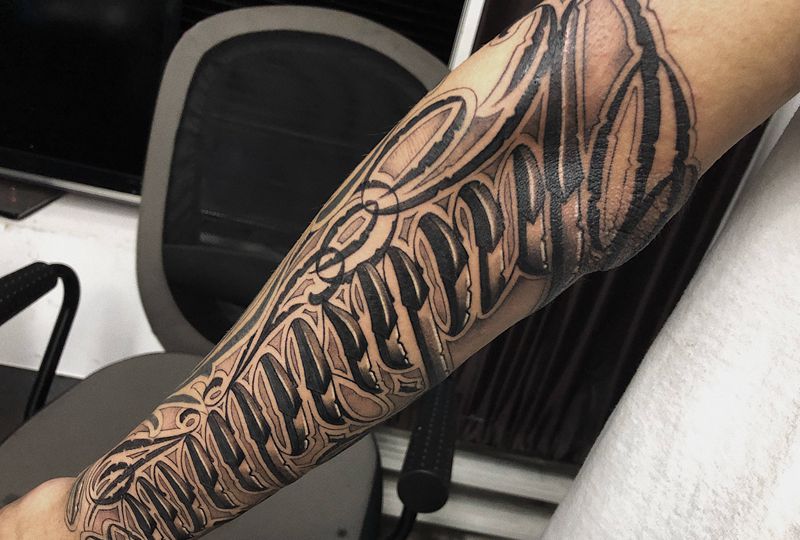 当前位置: 首页 >湖北省武汉市纹身店-Liberator Tattoo纹身图案>独特纹身图片_手臂花体字纹身图案