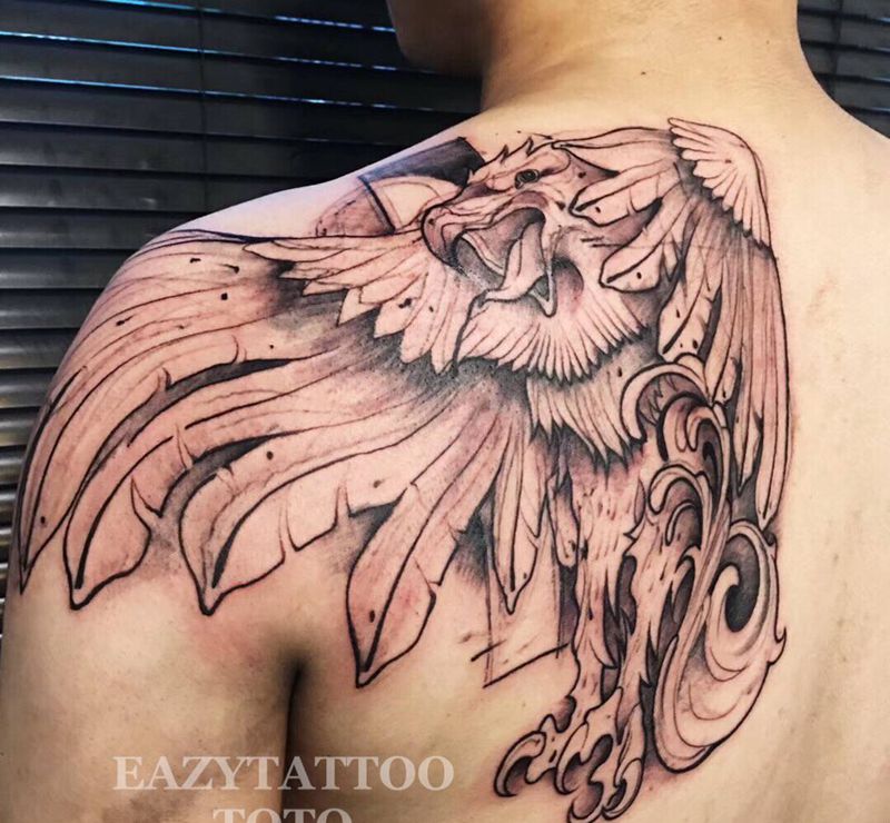 • 纹身吧推荐的披肩图腾半胛纹身图案作品展示