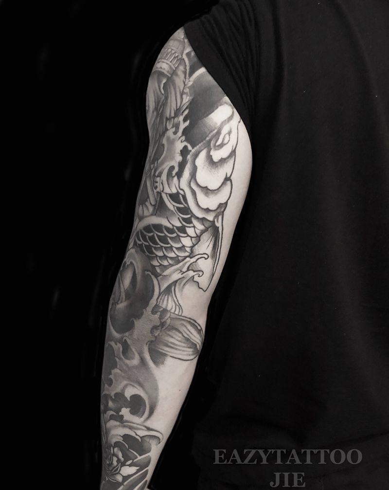当前位置: 首页 >湖北省武汉市纹身店-Liberator Tattoo纹身图案>传统鲤鱼纹身图片_手臂手部老传统纹身图案