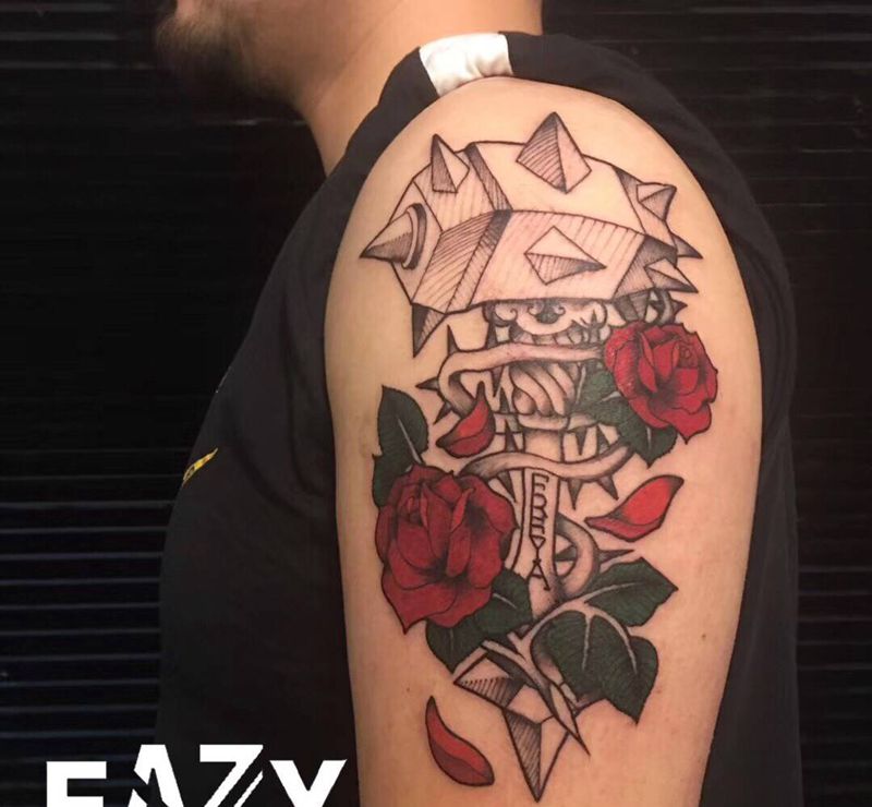 • 纹身吧推荐的披肩图腾半胛纹身图案作品展示
