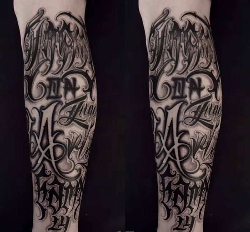 当前位置: 首页 >湖北省武汉市纹身店-Liberator Tattoo纹身图案>花体字纹身图片_腿部花体字花体字纹身图案