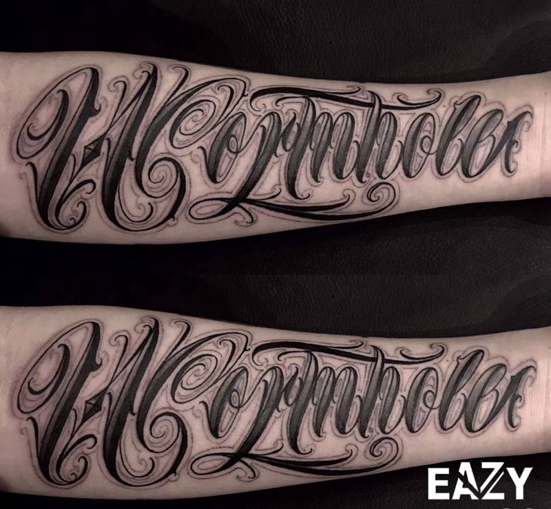 Wormhole纹身图片_手臂花体字花体纹身图案