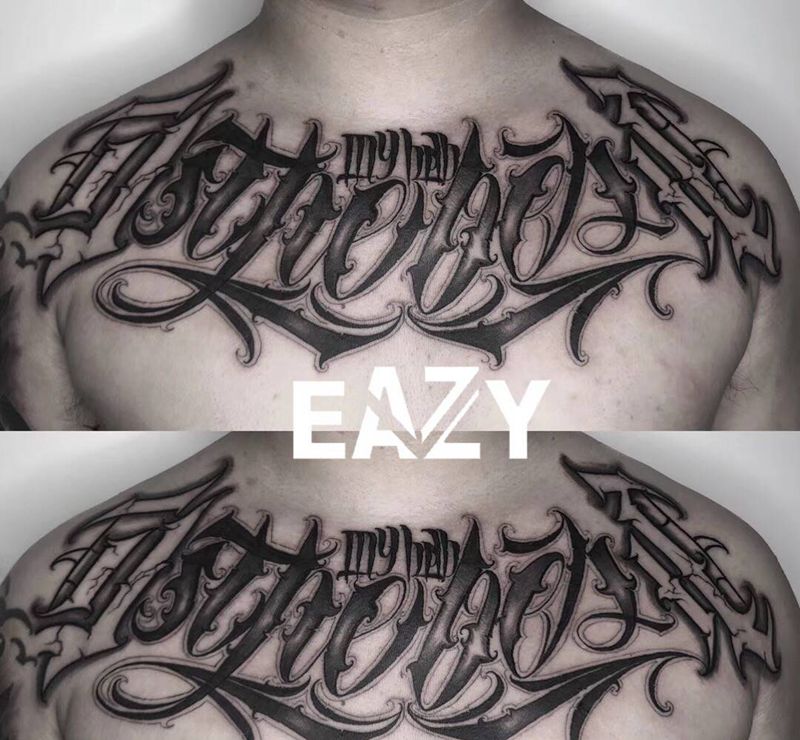 花体字纹身图片_胸部花体字花体字纹身图案