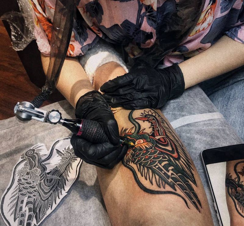 • T网红王老大花腿龙纹身图片_腿部新传统纹身图案