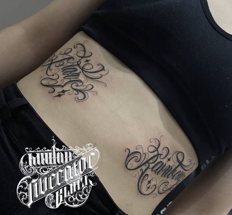 星星彩虹纹身图片_胸部花体字花体字纹身图案