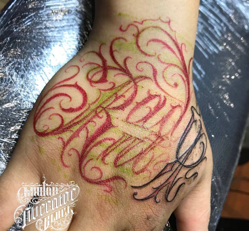 当前位置: 首页 >湖北省武汉市纹身店-Liberator Tattoo纹身图案>花体字纹身图片_手部花体字花体字纹身图案