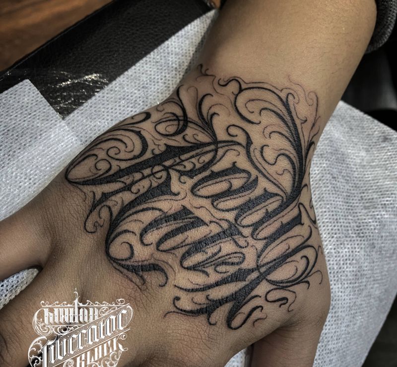 当前位置: 首页 >湖北省武汉市纹身店-Liberator Tattoo纹身图案>花体字纹身图片_手部花体字花体字纹身图案