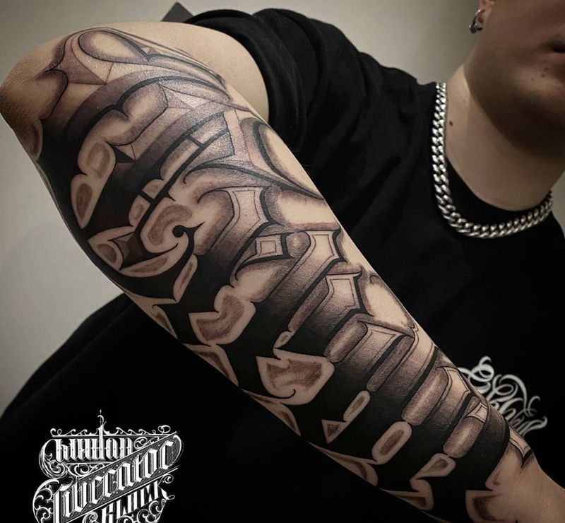当前位置: 首页 >湖北省武汉市纹身店-Liberator Tattoo纹身图案>花体字纹身图片_手臂花体字花体字纹身图案