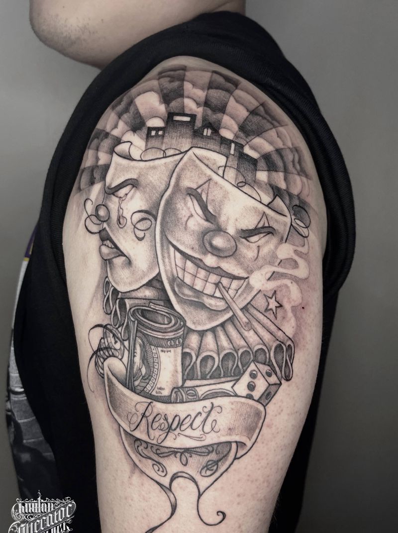 • 纹身吧推荐的披肩图腾半胛纹身图案作品展示