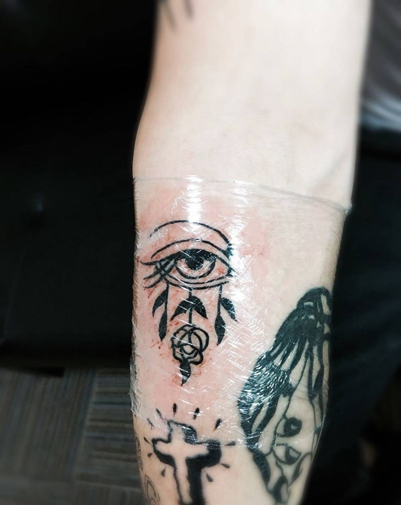 • 手背潮流时尚的玫瑰花眼睛纹身图案