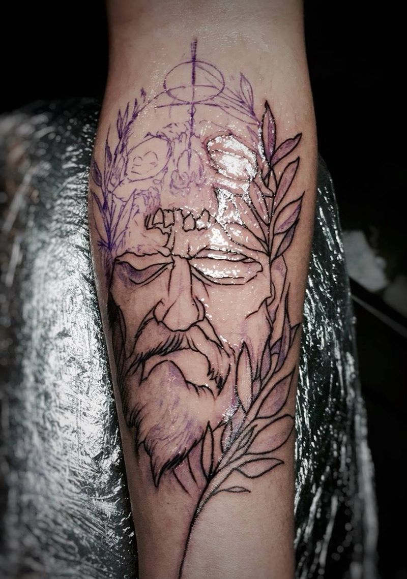 当前位置: 首页 >湖北省武汉市纹身店-炎刺青纹身图案>小臂插画.纹身图片_成品手臂欧美几何人物植物纹身图案