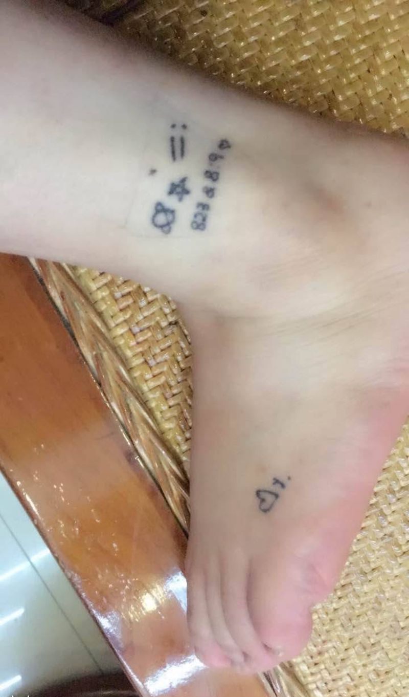 当前位置: 首页 >湖北省武汉市纹身店-炎刺青纹身图案>两个小遮盖纹身图片_成品腿部脚部欧美清新几何纹身图案